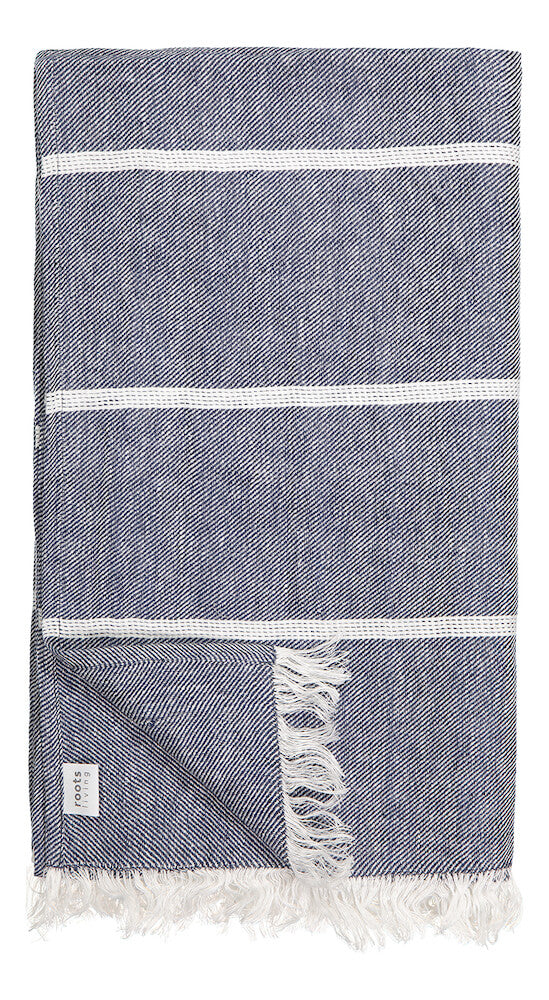 This lightweight towel is made of 100% linen. It's soft, generously sized, and dries quickly — making it easy to take with you anywhere. Use it as a towel or even as a picnic blanket. The timeless striped pattern and classic blue color make it a piece you'll love to hang in your sauna or summer cottage.