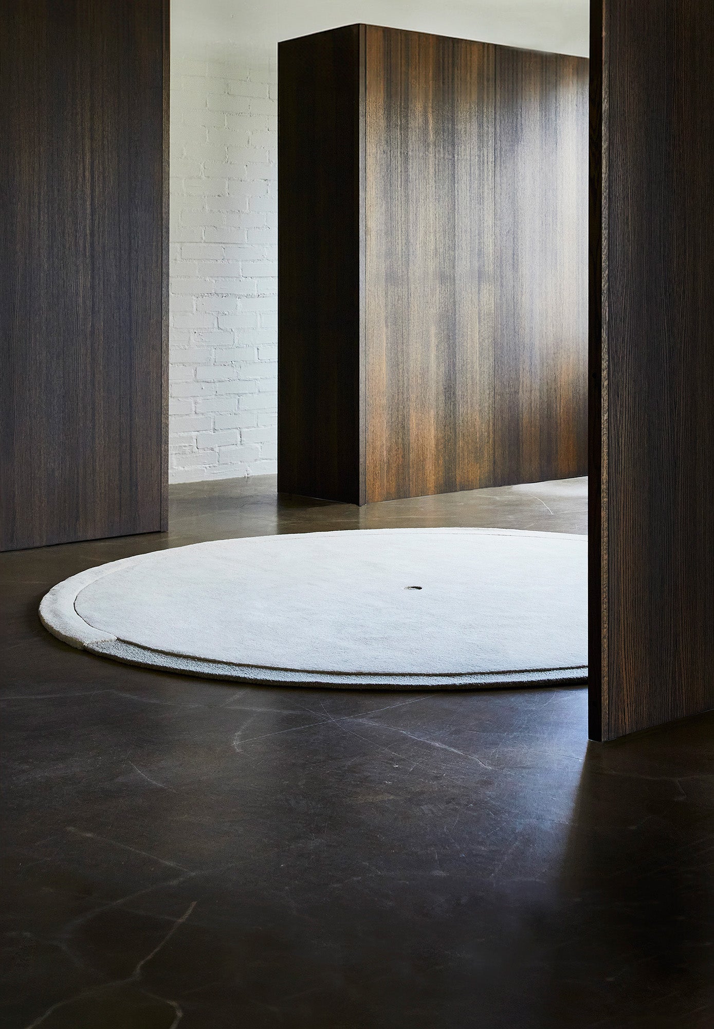 The round Geo Zero rug brings softness and balance to Interiors