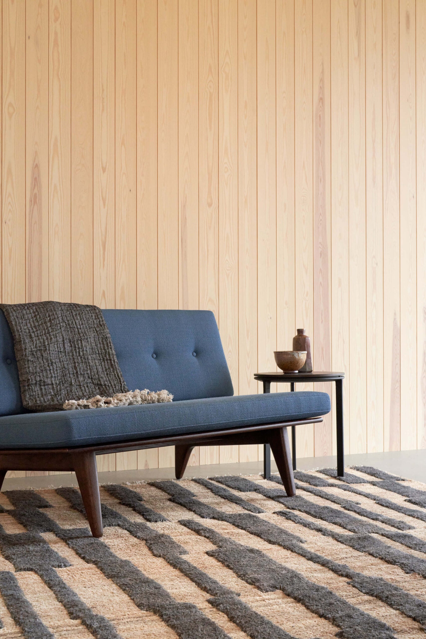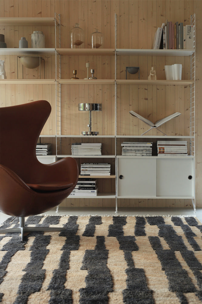 Pilari rug is designed by Ulla Koskinen and part of the Roots Living Designer collection. Graphic design, timeless colours and fluctuations in pile height emphasize the use of various natural materials in the Pilari rugs. The hand drawn pattern by Ulla Koskinen is beautifully reproduced on a hand-knotted rug. The pilari rug is a natural and functional part of the interior. It serves as both a visual element of the interior and an acoustic and softening part of the space. The rug is available in hemp and wool. Part of the carpet sales income is donated to the Women’s Bank.