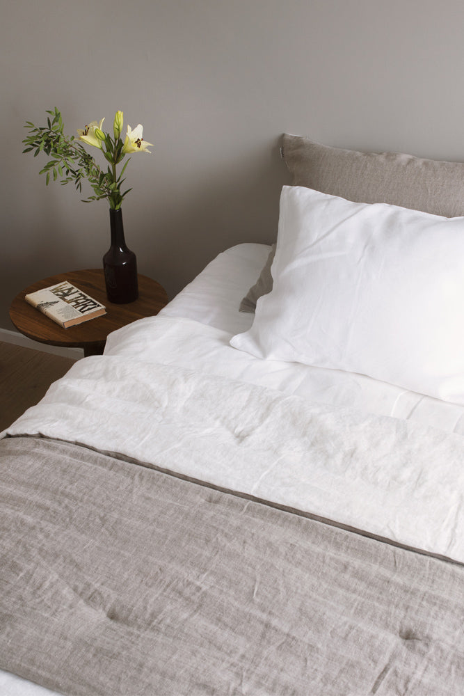 Kaksipuoleinen pehmeä Roots Linen -pellavapuolipäiväpeite on valmistettu 100 % pellavasta ja täytetty vanulla. Toinen puoli on luonnonvärinen ja toinen valkoinen. Tämä yksinkertainen ja ajaton peite on pehmeä ja miellyttävä ihoa vasten. Roots Linen -puolipäiväpeitettä voi käyttää monin eri tavoin osana petausta. Voit täydentää kokonaisuuden peitteeseen sopivilla Roots Linen -tyynyliinoilla.