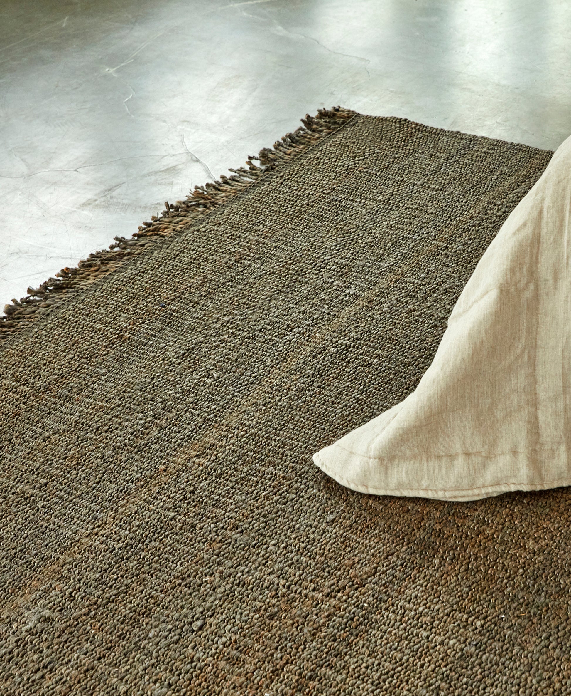 Fringe Hemp -matto upeassa tummanruskeassa sävyssä! Syvä ja vivahteikas ruskea taittaa kauniisti harmaaseen ja hampun luonnollinen väri kuultaa läpi kauniisti.