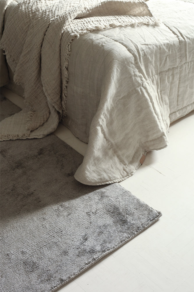 Pile Viscose -viskoosimatossa on kaunis hienostunut kiilto ja elävä pinta. Matto on käsin solmittu ja sen nukkapinta on leikattu lyhyeksi. Ohut nukkapinta antaa matolle modernin ilmeen, mutta tuntu matossa on silti silkkisen pehmeä. Harmaa viskoosimatto sopii niin olohuoneisiin kuin makuuhuoneisiinkin tuomaan pehmeyttä ja ylellistä tunnelmaa.