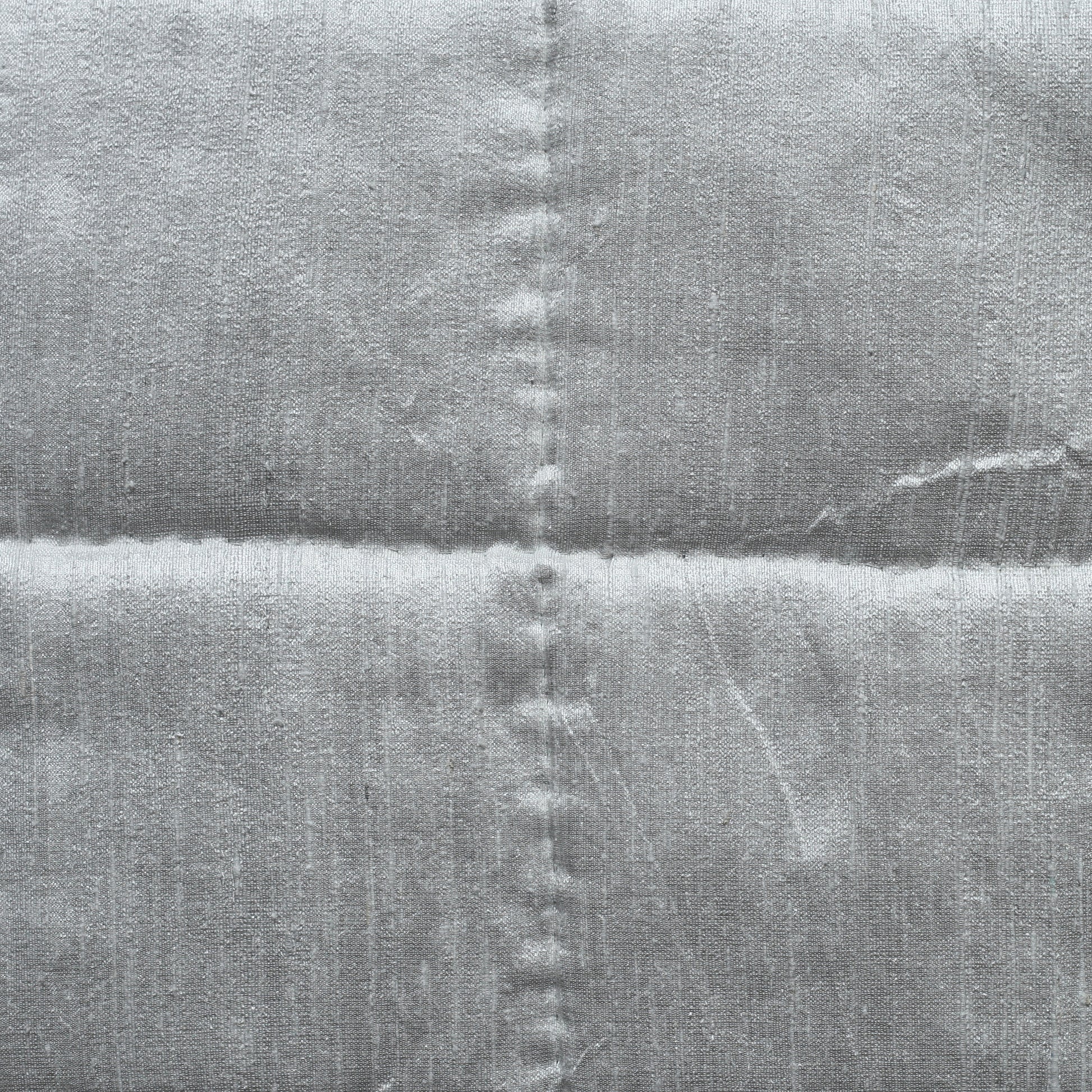 Roots Living -silkkipäiväpeitto on tikattu käsin. Päiväpeitto on pehmustettu ohuella vanulla ja vuorattu puuvillakankaalla. Päiväpeiton kulmista kaksi on pyöristetty, joten peitto laskeutuu kauniisti. Päiväpeitossa on kaunis hopeanharmaa sävy. Silkkipäiväpeiton kaunis kiilto tuo makuuhuoneen sisustukseen ylellistä tunnelmaa.
